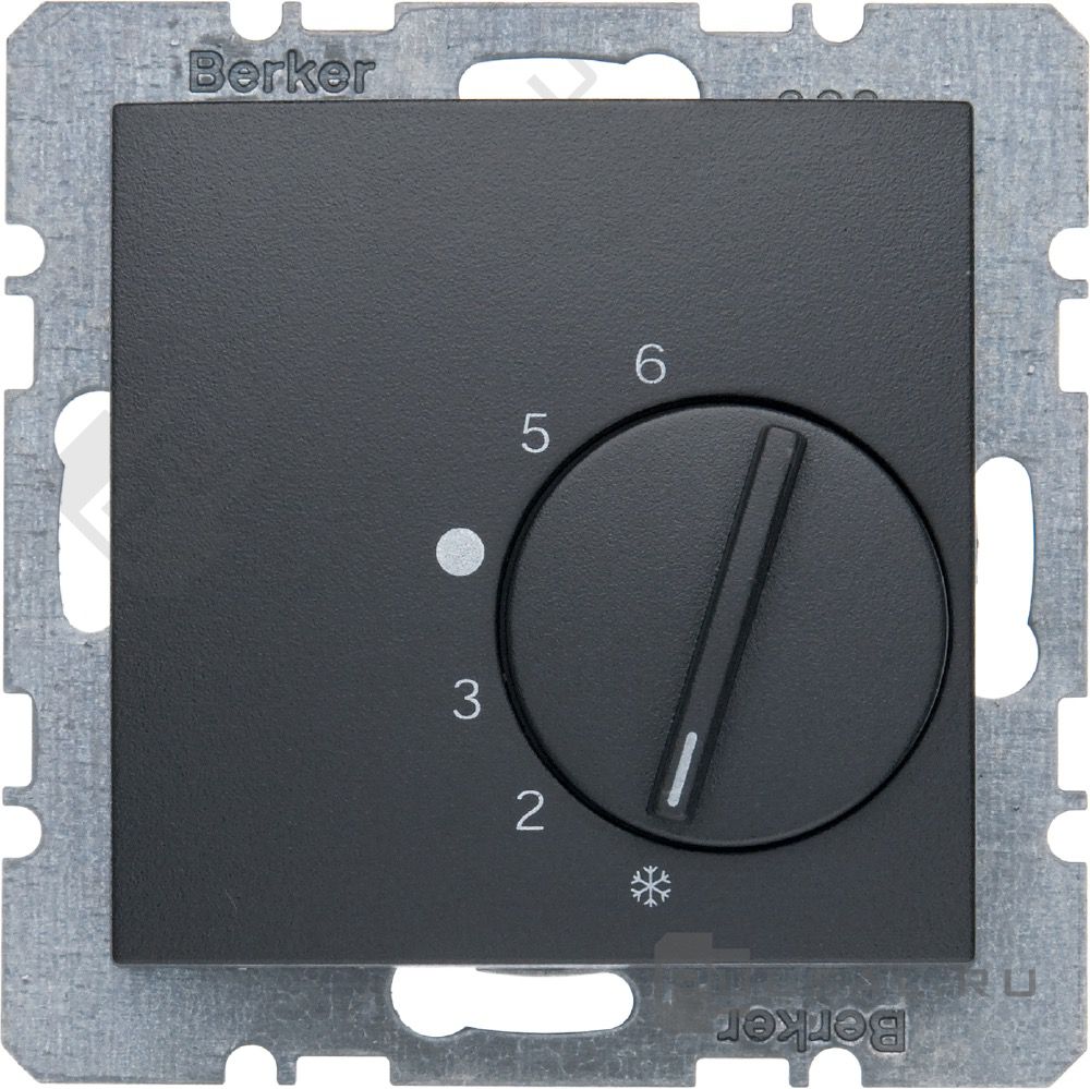 Терморегулятор 10А, ПК-контакт, 230В B.3, B.7, поворотный, датчик t° воздуха (встроенный), без таймера, цвет - антрацит матовый