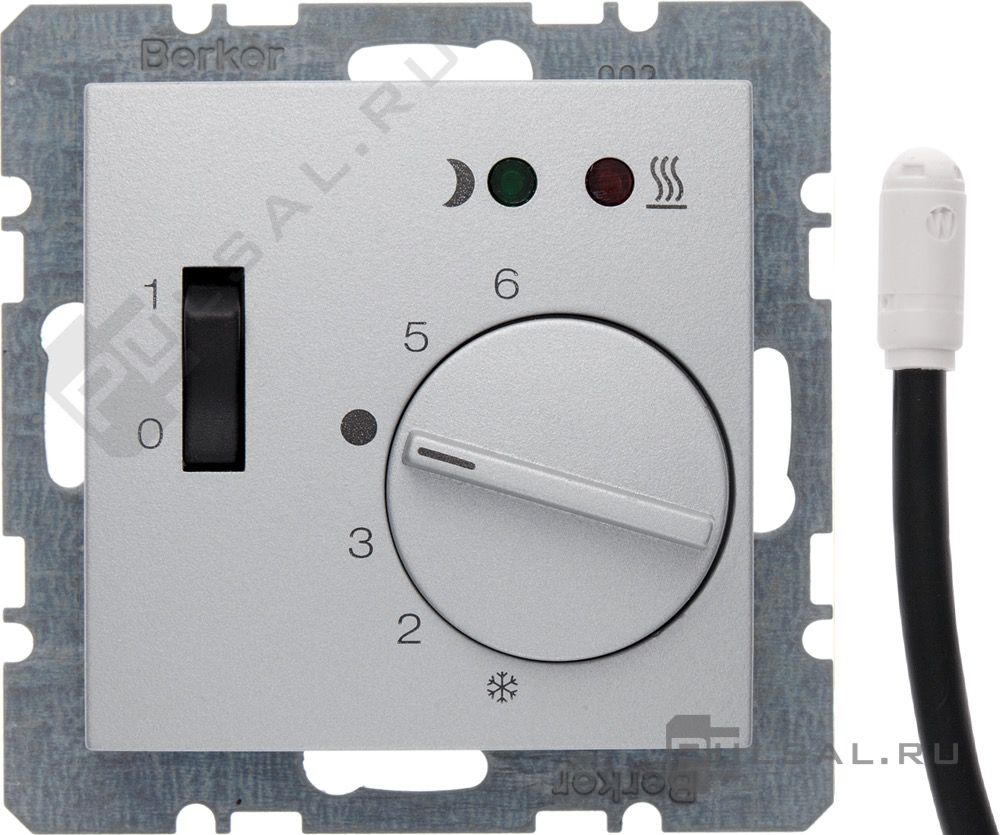 Терморегулятор 10А, НО-контакт, 230В B.7, поворотный, датчик t° пола (внешний), без таймера, цвет - алюминий матовый
