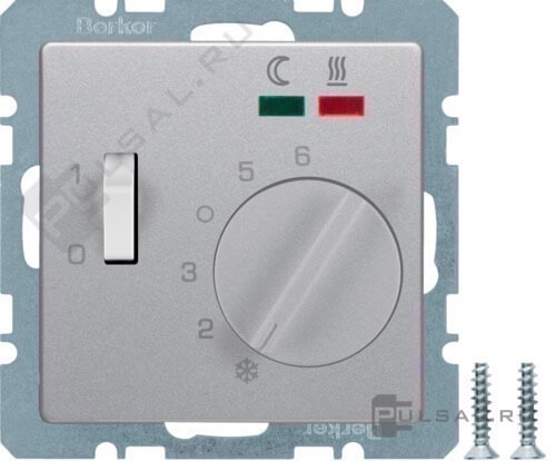 Терморегулятор 10А, НО-контакт, 230В Q.1, Q.3, Q.7, поворотный, датчик t° пола (внешний), без таймера, цвет - алюминий бархат