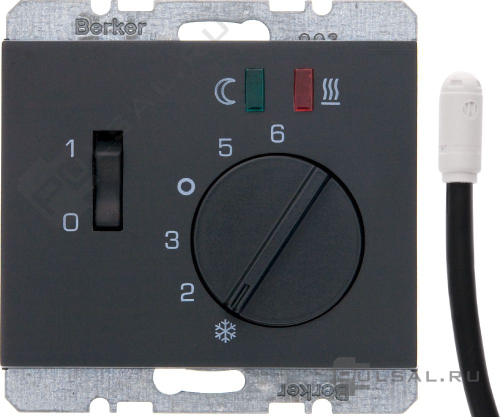 Терморегулятор 10А, НО-контакт, 230В K.1, поворотный, датчик t° пола (внешний), без таймера, цвет - антрацит матовый