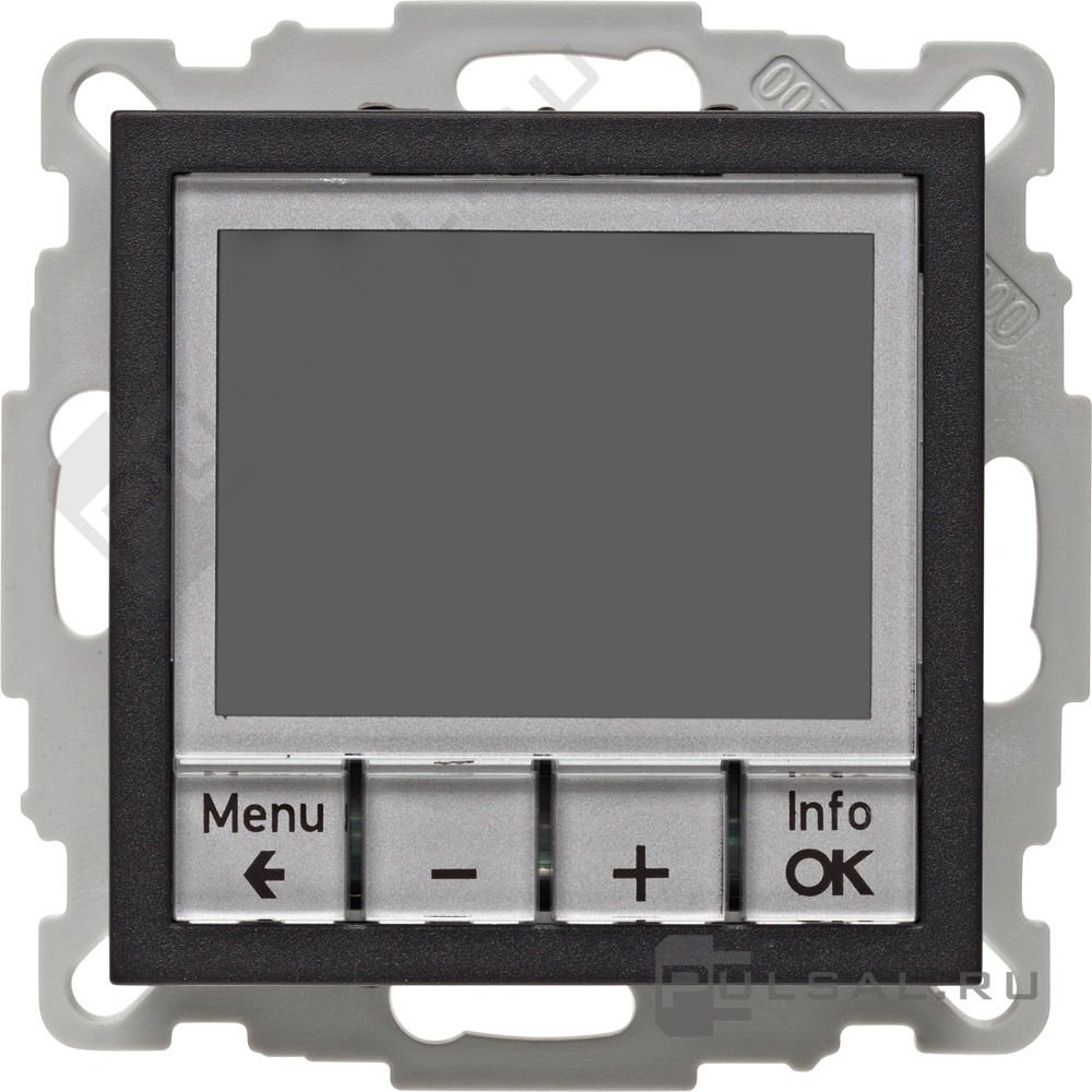 Терморегулятор 10А, НО-контакт, 230В B.3, B.7, клавишный, датчик t° воздуха (встроенный), с возможностю подключения датчика t° пола, с таймером, цвет - антрацит матовый