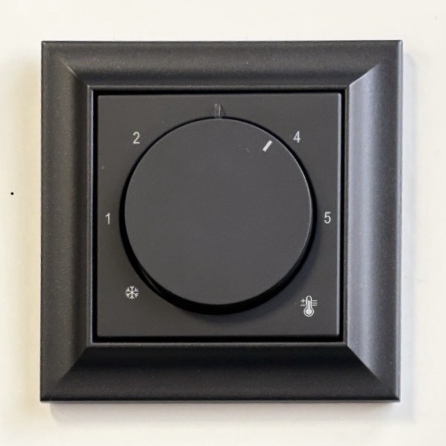 Терморегулятор 10А, НО-контакт, 230В ECO profi и ECO profi Standart, ECO profi design (ECO Profi Deco), поворотный, датчик t° пола (внешний), без таймера, цвет - черный матовый