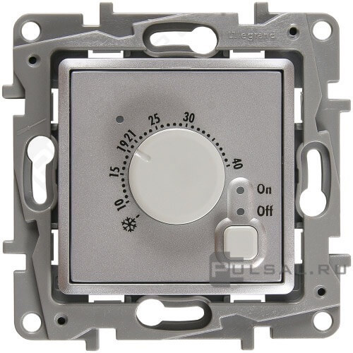 Светорегулятор (диммер) 5-300 Вт/ВА, для LED 5-75 ВА Etika, поворотно-нажимной, с возможностью управления с 2-х мест, лампы накаливания и галогенные 220В (R), лампы с индукционным (обмоточным) трансформ.(L), лампы с электронным (емкостным) трансформ.(C), диммируемые лампы LED 220В (LEDi тип L), диммируемые лампы LED 220В (LEDi тип C), цвет - алюминий