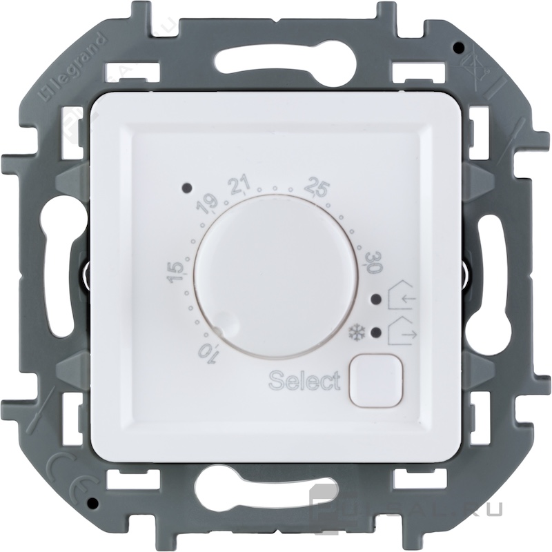 Терморегулятор 16А, НО-контакт, 230В Inspiria, поворотный, датчик t° пола (внешний), без таймера, цвет - белый