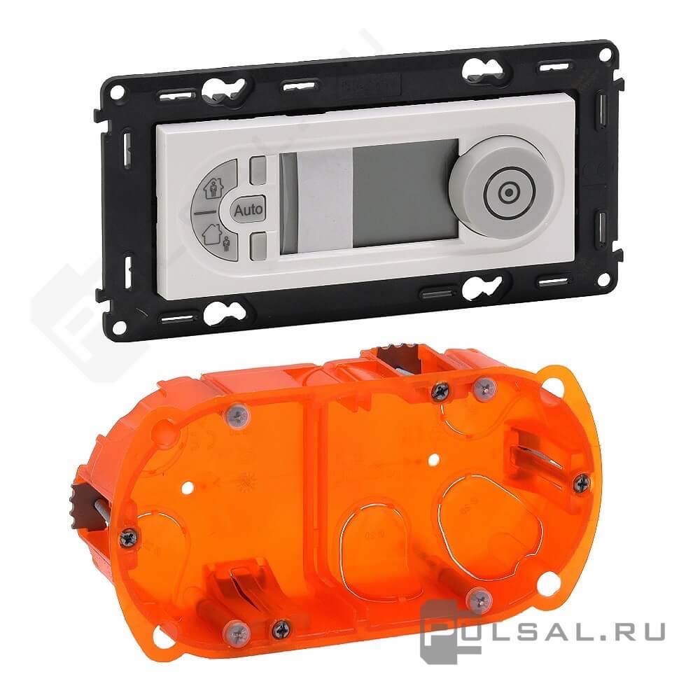 В комплекте с монтажной коробкой Batibox Кат. № 0 801 02 (глубина 40 мм).