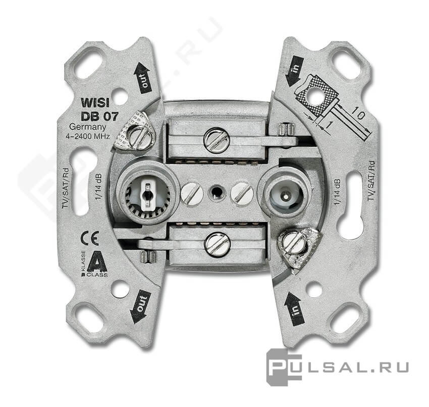 Розетка проходная 4 dB Basic 55, Carat, Impuls, ДИНАСТИЯ, Pure сталь, Solo, Busch-axcent, Future linear, Future, Alpha nea, Alpha exclusive, Busch-Duro 2000 SI / Reflex SI, телевизионная (TV), спутниковая (SAT), радио (R), двойная