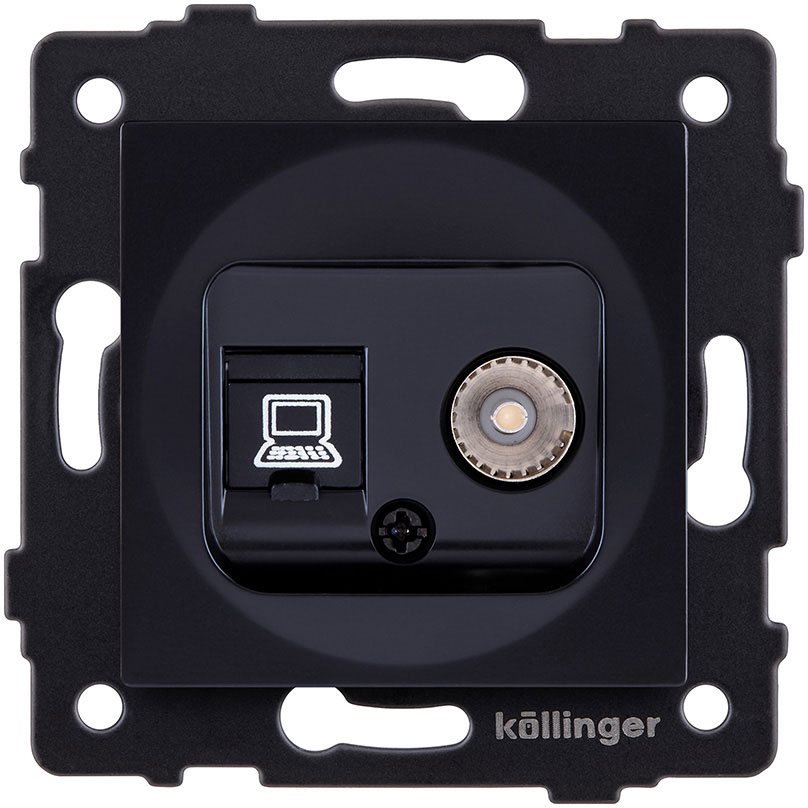 Розетка одиночная TV (тип"мама") + RJ45 Aspekt, Eleganz, Reflex, телевизионная (TV), одинарная, цвет - черный