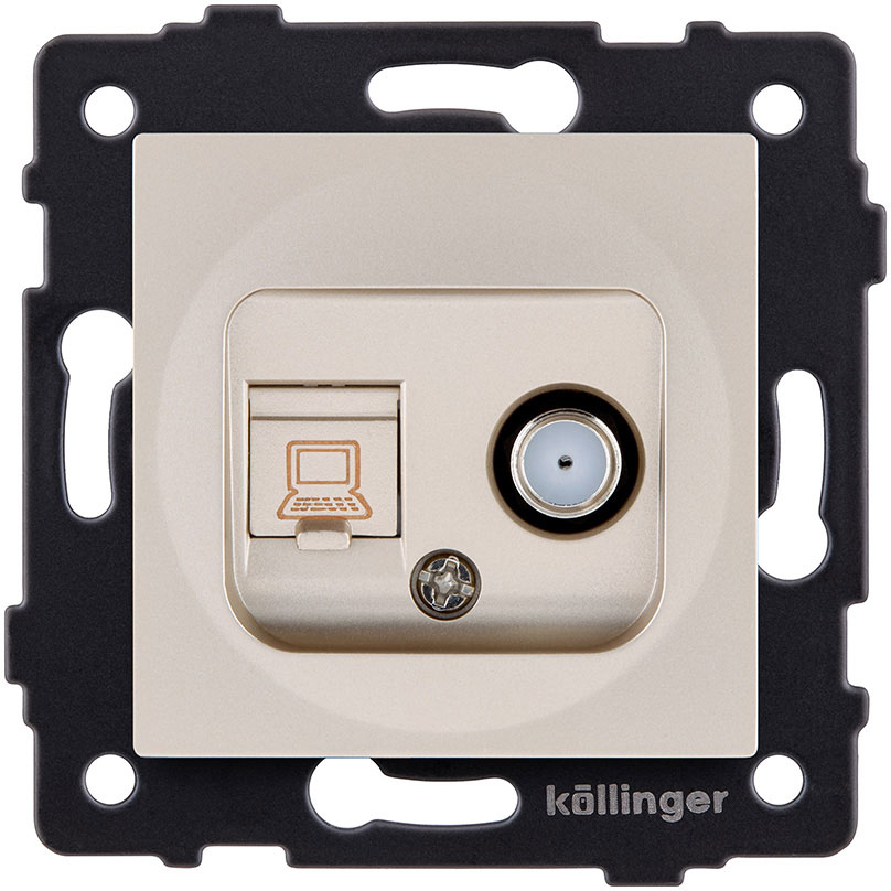 Розетка одиночная SAT + RJ45 Aspekt, Eleganz, Reflex, спутниковая (SAT), одинарная, цвет - золотой