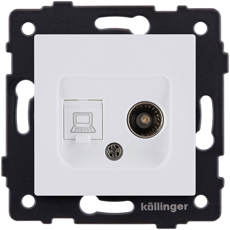 Розетка одиночная TV (тип"мама") + RJ45 Aspekt, Eleganz, Reflex, телевизионная (TV), одинарная, цвет - белый матовый