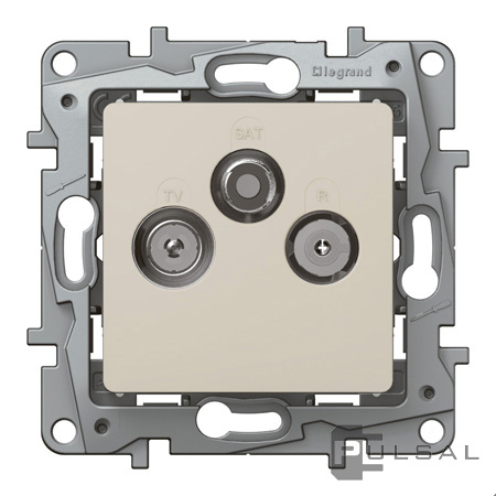 Розетка одиночная Etika, телевизионная (TV), спутниковая (SAT), радио (R), тройная, цвет - слоновая кость