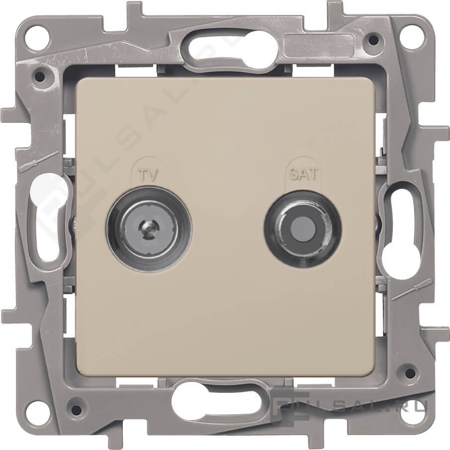 Розетка одиночная (двухкабельная) Etika, телевизионная (TV), спутниковая (SAT), двойная, цвет - слоновая кость