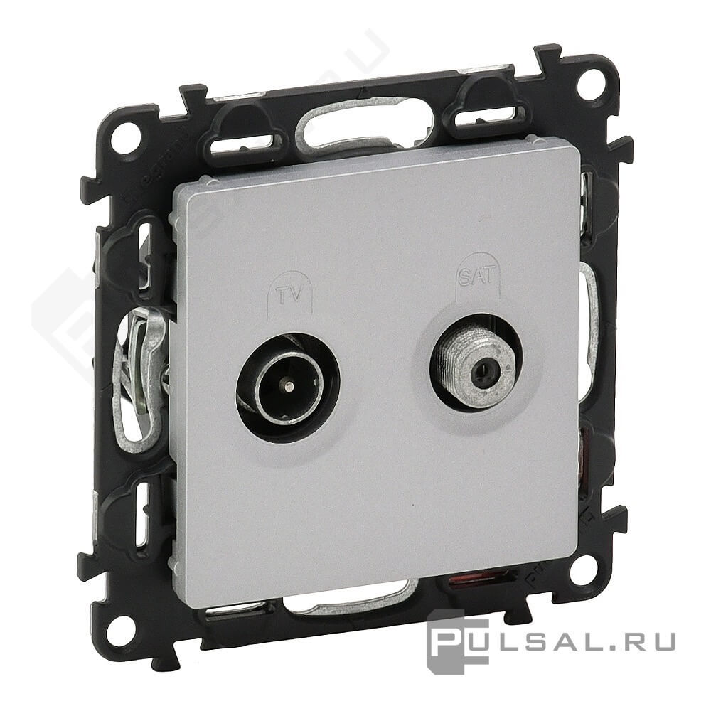 Розетка одиночная двухкабельная Valena Life, телевизионная (TV), спутниковая (SAT), двойная, цвет - алюминий