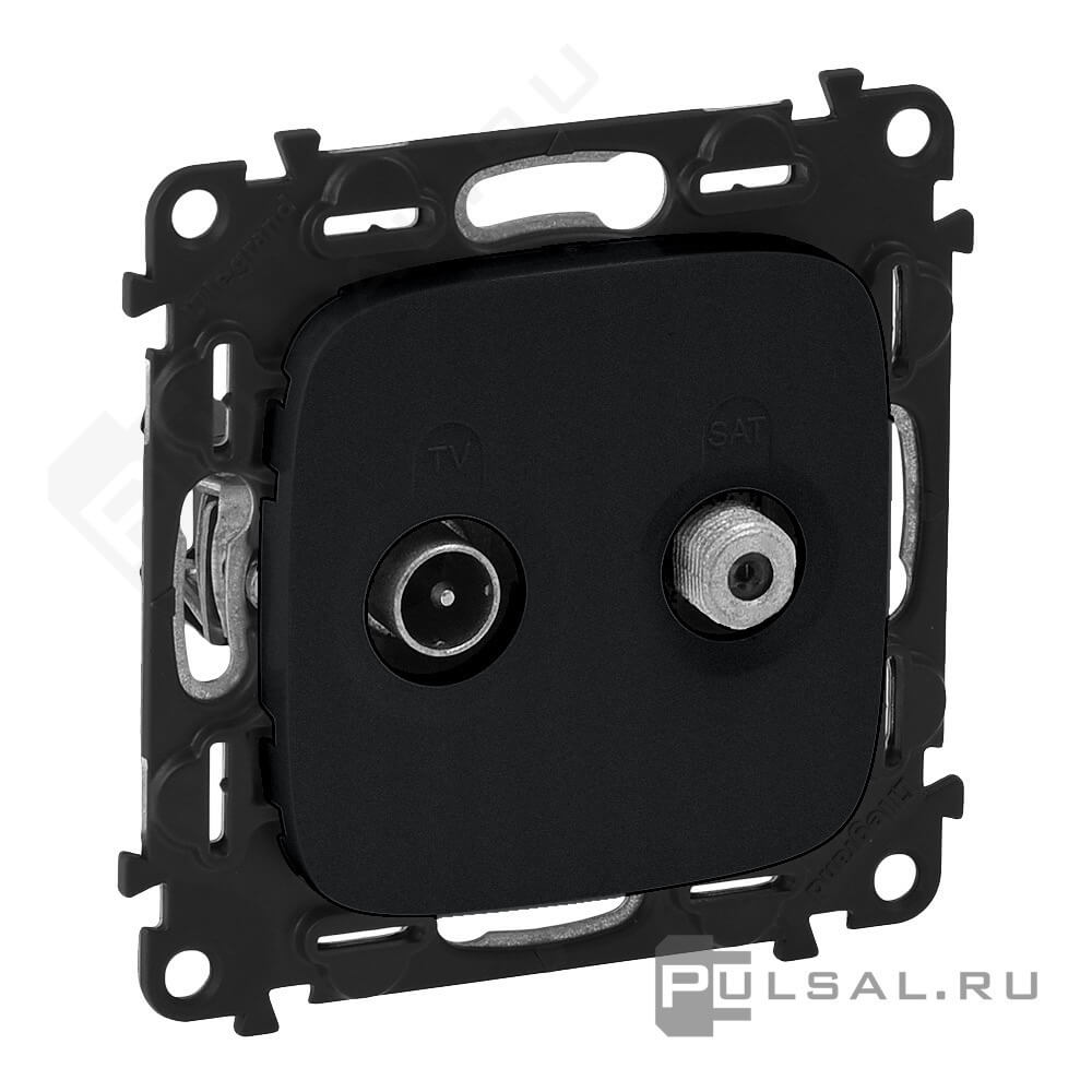 Розетка одиночная двухкабельная Valena Allure, телевизионная (TV), спутниковая (SAT), двойная, цвет - матовый черный