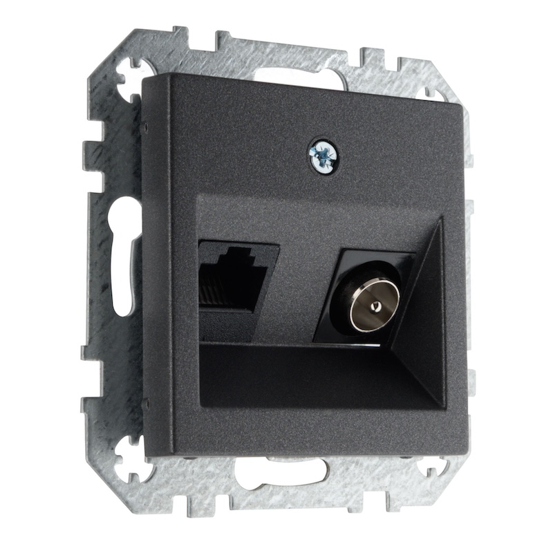 Розетка одиночная TV+RJ45 Epsilon, Retro Liregus, телевизионная (TV), одинарная, цвет - антрацит