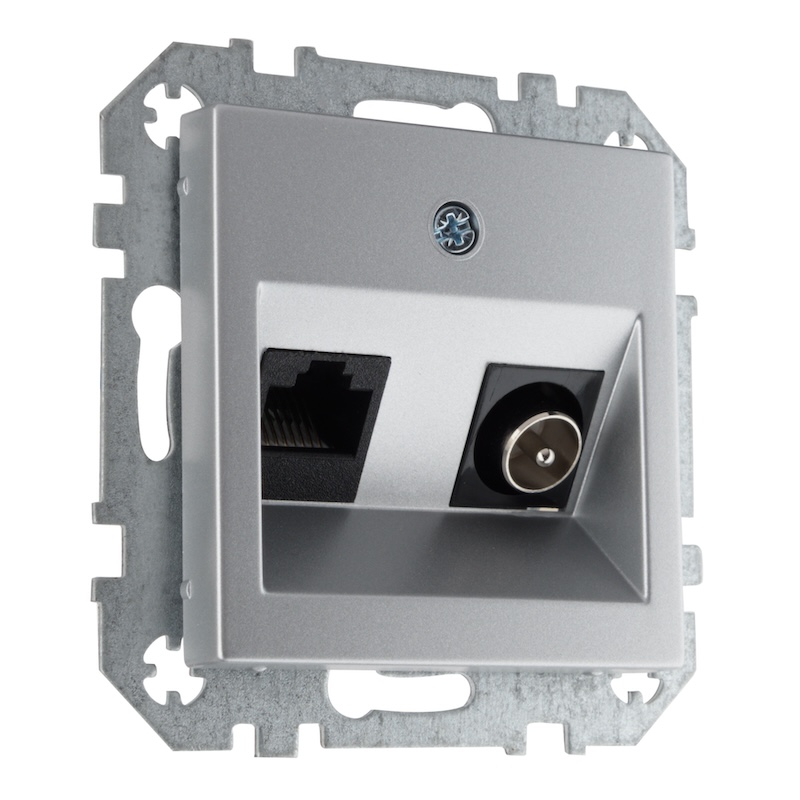 Розетка одиночная TV+RJ45 Epsilon, Retro Liregus, телевизионная (TV), одинарная, цвет - алюминий