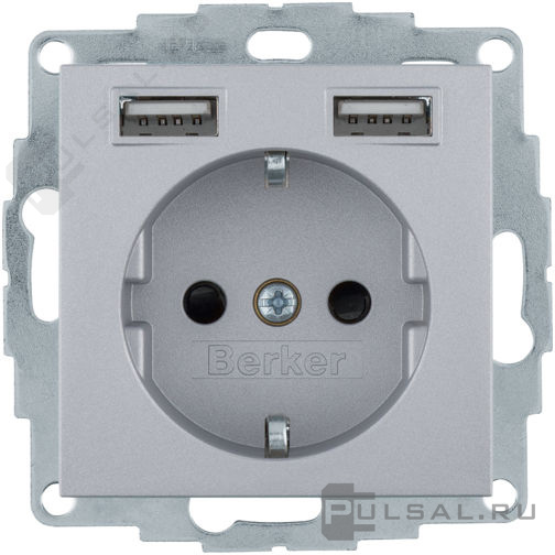 Розетка USB A+A, 2.4А с электрической розеткой S.1, B.3, B.7, USB type-A 5V, Электр. с USB, двойная, цвет - алюминий матовый