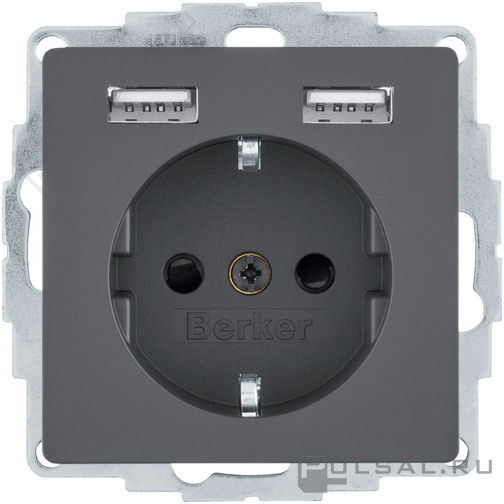 Розетка USB A+A, 2.4А с электрической розеткой Q.1, Q.3, Q.7, USB type-A 5V, Электр. с USB, двойная, цвет - антрацит бархат