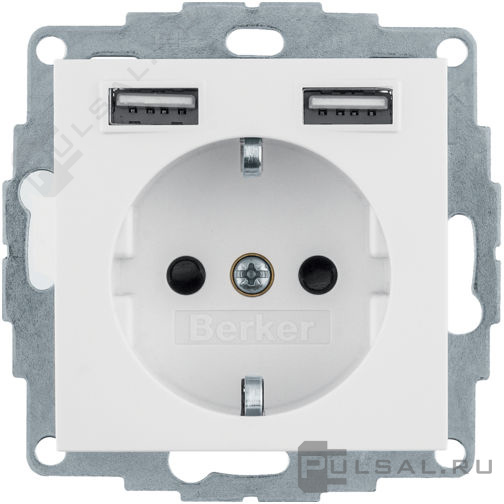 Розетка USB A+A, 2.4А с электрической розеткой S.1, USB type-A 5V, Электр. с USB, двойная, цвет - белый глянцевый