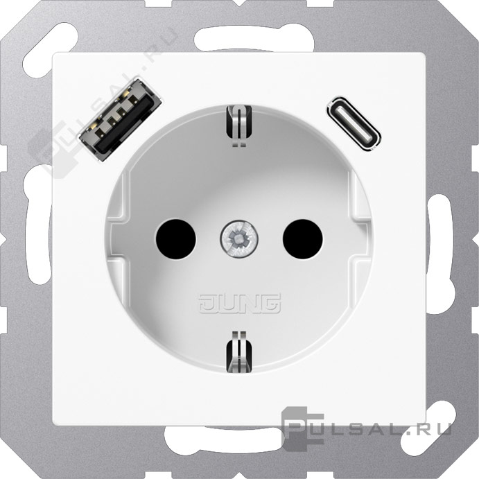 Розетка USB A+C с электрической розеткой A VIVA, A creation, A 550, A flow, AS 500, USB type-C 5V, USB type-A 5V, Электр. с USB, двойная, цвет - белый
