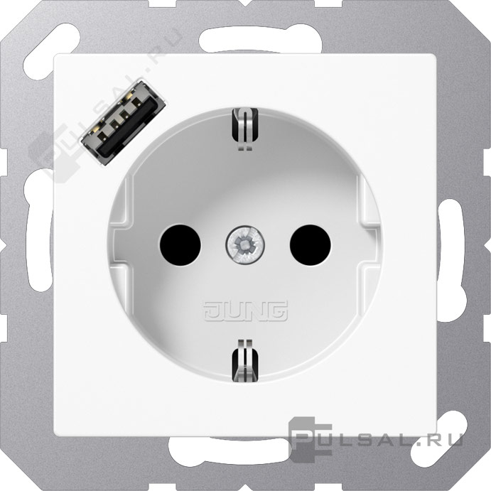 Розетка USB A с электрической розеткой A VIVA, A creation, A 550, A flow, AS 500, USB type-A 5V, Электр. с USB, одинарная, цвет - белый