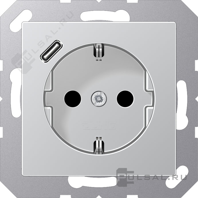 Розетка USB C с электрической розеткой A VIVA, A creation, A 550, A flow, USB type-C 5V, Электр. с USB, одинарная, цвет - алюминий