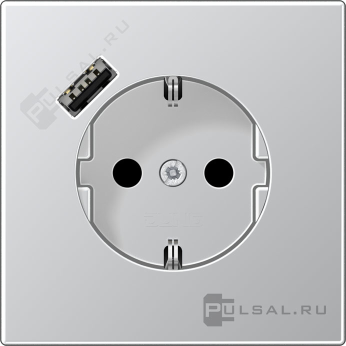 Розетка USB A с электрической розеткой LS 990, LS 1912, LS plus, LS ZERO, LS-design, FD-design, USB type-A 5V, Электр. с USB, одинарная, цвет - алюминий