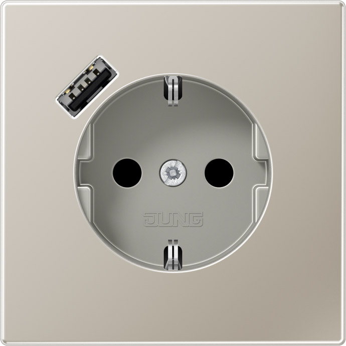 Розетка USB A с электрической розеткой LS 990, LS 1912, LS plus, LS ZERO, LS-design, FD-design, USB type-A 5V, Электр. с USB, одинарная, цвет - нержавеющая сталь