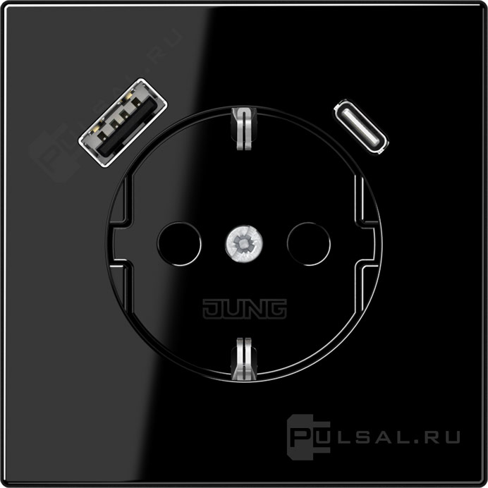 Розетка USB A+C с электрической розеткой LS 990, LS plus, LS-design, FD-design, USB type-C 5V, USB type-A 5V, Электр. с USB, двойная, цвет - черный