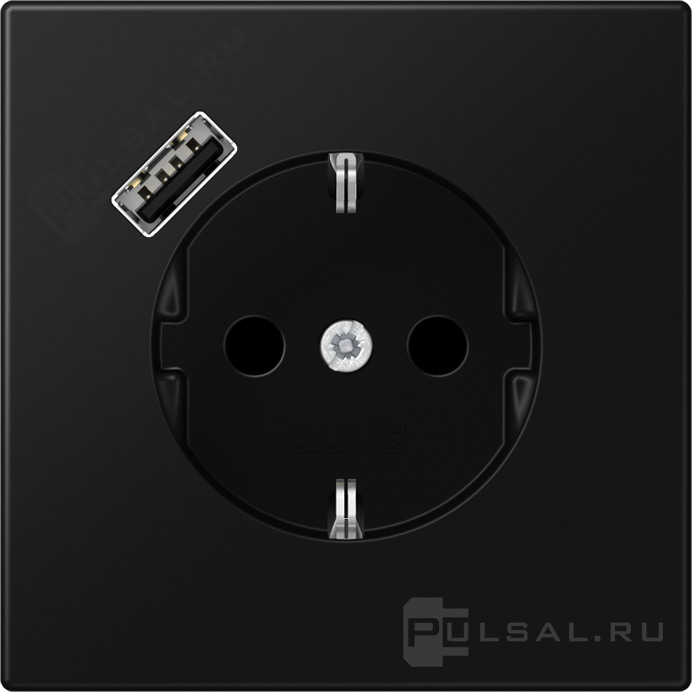 Розетка USB A с электрической розеткой LS 990, LS plus, LS ZERO, LS-design, FD-design, USB type-A 5V, Электр. с USB, одинарная, цвет - черный матовый