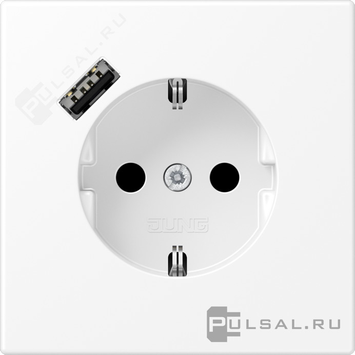 Розетка USB A с электрической розеткой LS 990, LS plus, LS ZERO, LS-design, FD-design, USB type-A 5V, Электр. с USB, одинарная, цвет - белый матовый