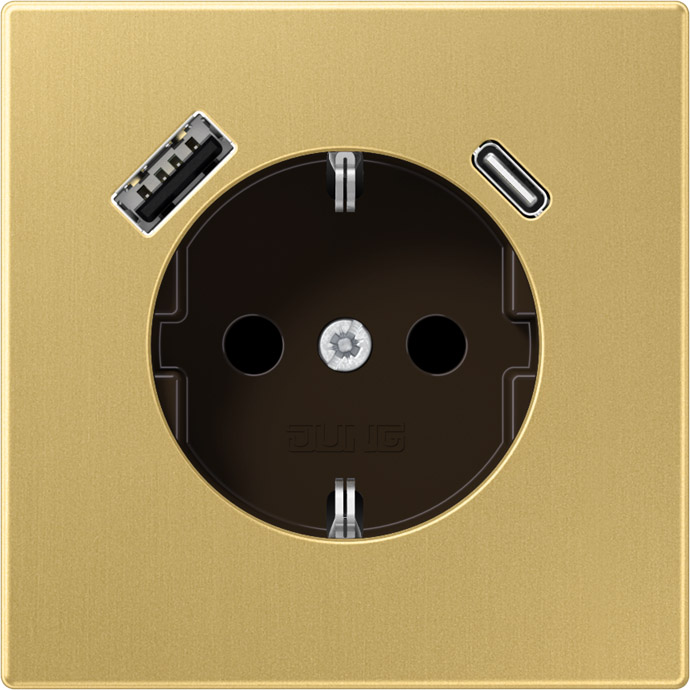 Розетка USB A+C с электрической розеткой LS 990, LS 1912, LS plus, LS ZERO, LS-design, FD-design, USB type-C 5V, USB type-A 5V, Электр. с USB, двойная, цвет - латунь классическая