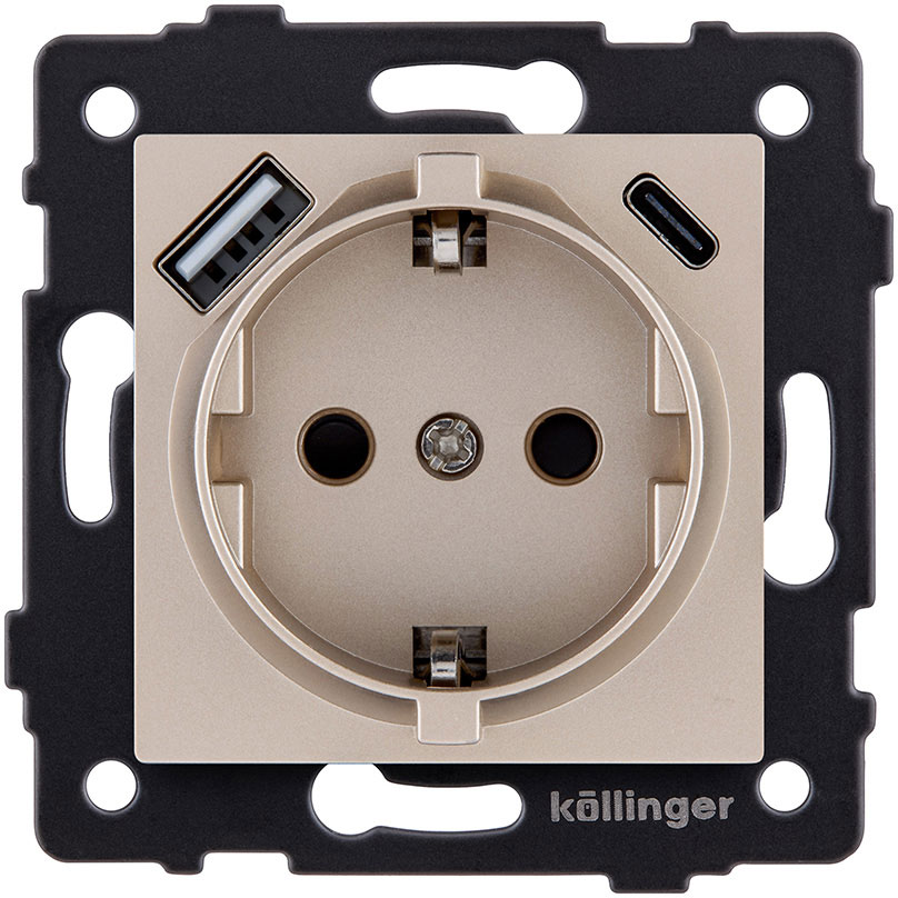 Розетка USB A+C 2.4А с электрической розеткой Aspekt, Eleganz, Reflex, USB type-C 5V, USB type-A 5V, двойная, цвет - золотой