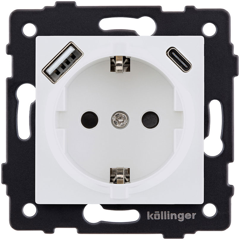 Розетка USB A+C 2.4А с электрической розеткой Aspekt, Eleganz, Reflex, USB type-C 5V, USB type-A 5V, двойная, цвет - белый матовый
