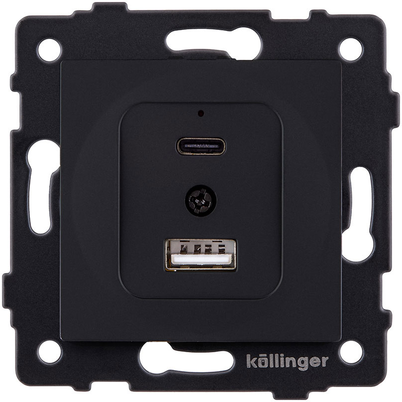 Розетка USB type-C + type-A, 3.0А Aspekt, Eleganz, Reflex, USB type-C 5V, USB type-A 5V, двойная, цвет - черный матовый