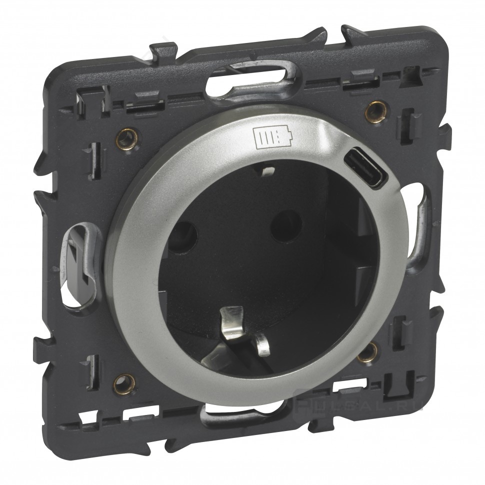 Розетка USB type-C, 3.0А с электрической розеткой Celiane, USB type-C 5V, Электр. с USB, одинарная, цвет - титан