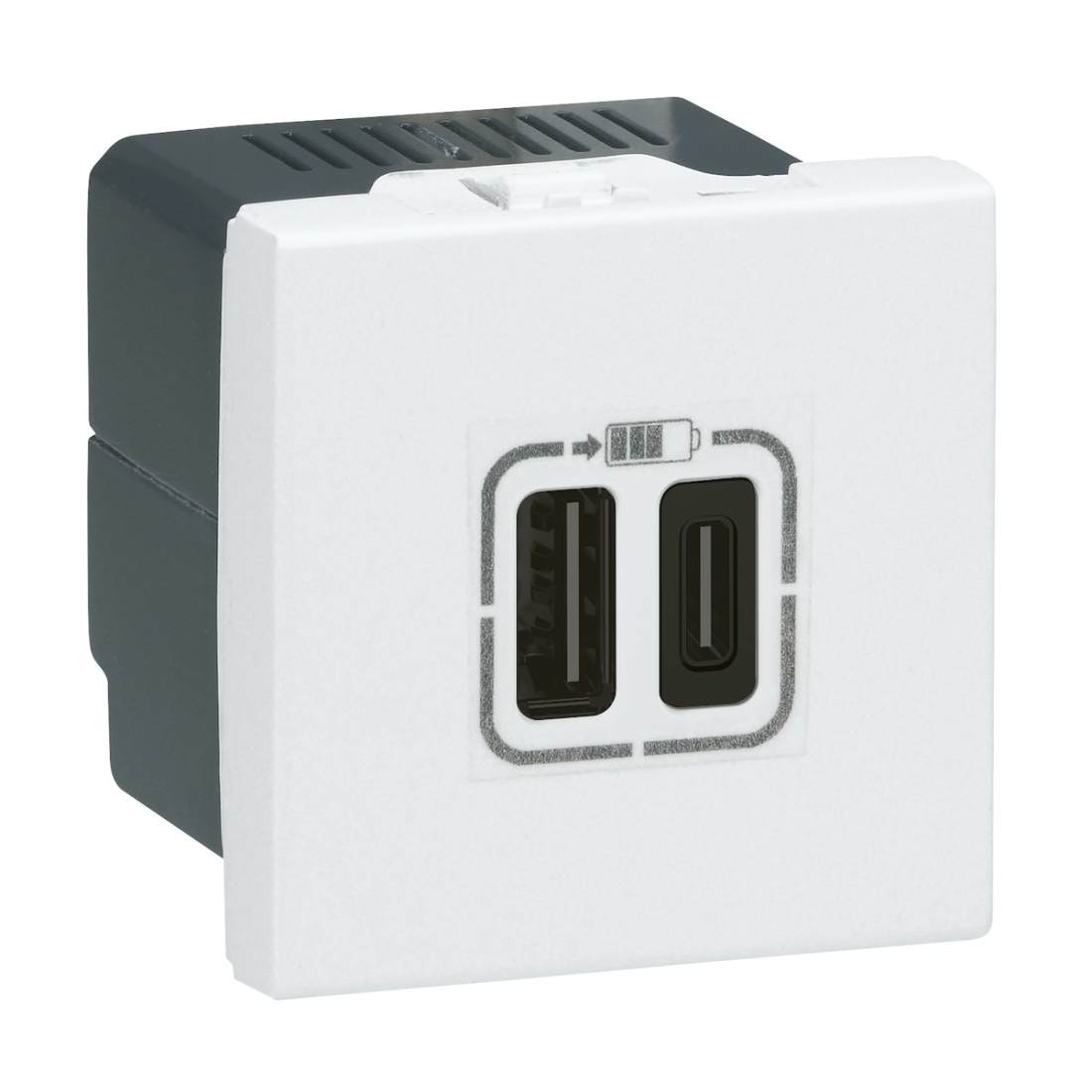 Зарядка USB type-A+C, 3,0А, 15 Вт Mosaic, DLP floor, DLP IP 44, DLP IP 40, USB type-C 5V, USB type-A 5V, двойная, цвет - белый