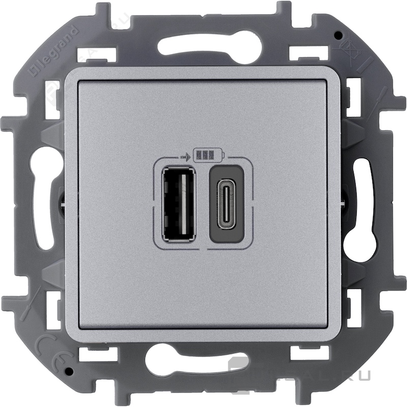 Розетка USB type-C + type-A, 3.0А Inspiria, Mosaic, DLP floor, DLP IP 44, DLP IP 40, USB type-C 5V, USB type-A 5V, двойная, цвет - алюминий