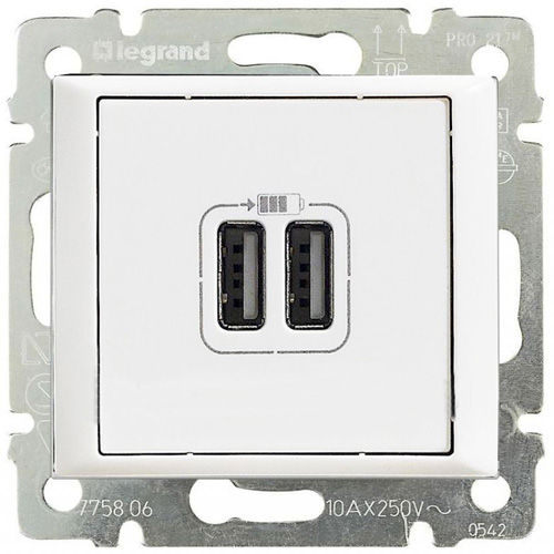 Розетка USB, 1.5А Inspiria, Valena, Mosaic, USB type-A 5V, двойная, цвет - белый