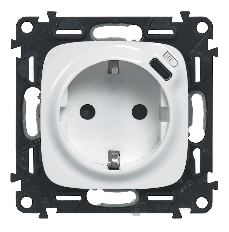 Розетка USB type-C, 3.0А с электрической розеткой Valena Allure, USB type-C 5V, Электр. с USB, одинарная, цвет - белый