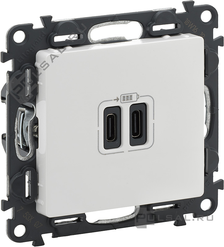Розетка USB type-C, 3.0А Valena Life, USB type-C 5V, двойная, цвет - белый