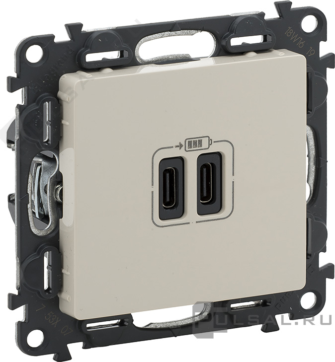 Розетка USB type-C, 3.0А Valena Life, USB type-C 5V, двойная, цвет - слоновая кость