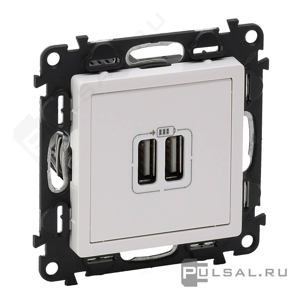 Розетка USB type-A, 1.5А Valena Life, USB type-A 5V, двойная, цвет - белый
