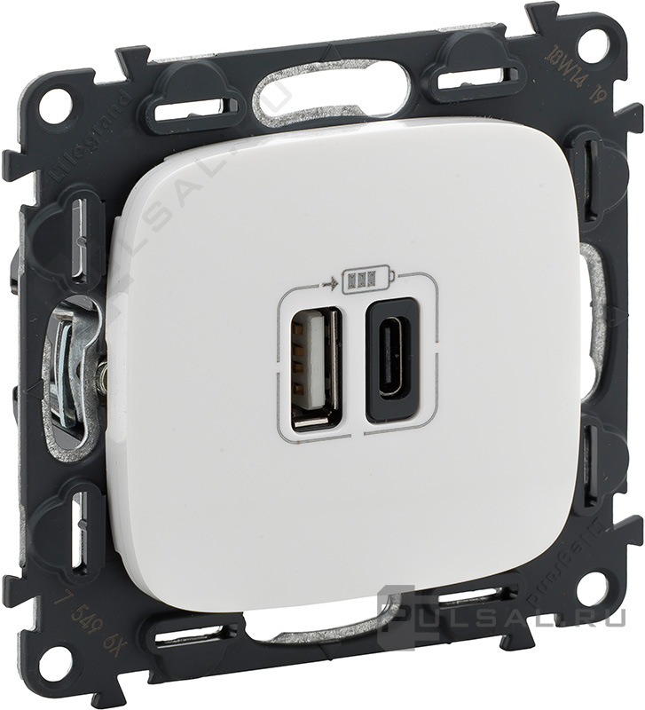 Розетка USB type-C + type-A, 3.0А Valena Allure, USB type-C 5V, USB type-A 5V, двойная, цвет - белый
