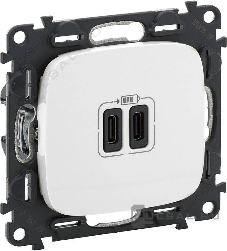 Розетка USB type-C, 3.0А Valena Allure, USB type-C 5V, двойная, цвет - белый