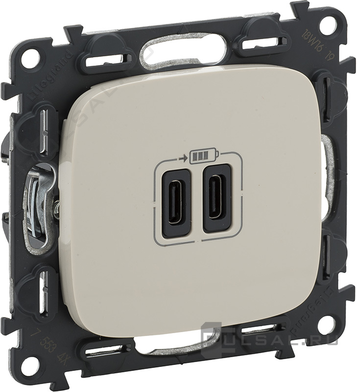 Розетка USB type-C, 3.0А Valena Allure, USB type-C 5V, двойная, цвет - слоновая кость