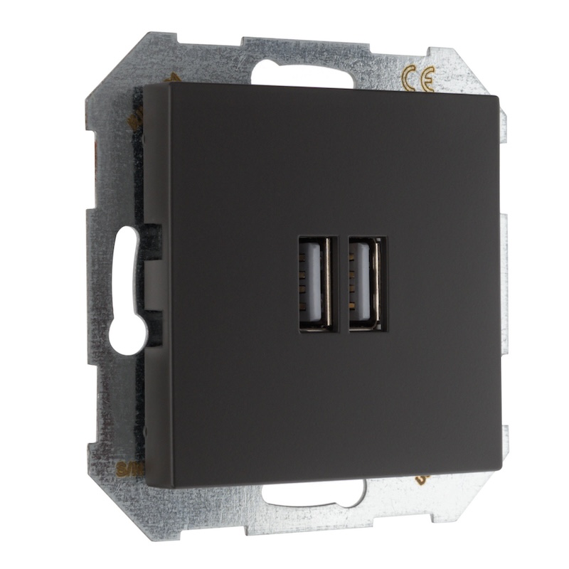 Розетка USB type-A+А, 3,4А Epsilon, Retro Liregus, USB type-A 5V, двойная, цвет - черно-коричневый матовый