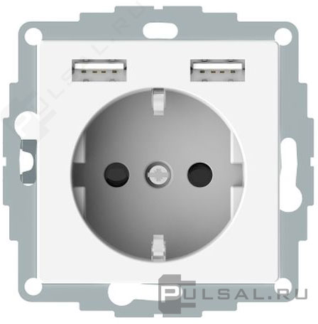 Розетка USB A+A, 2.4А с электрической розеткой M-Smart, M-Plan, M-Elegance, M-Pure, USB type-A 5V, Электр. с USB, двойная, цвет - полярно-белый