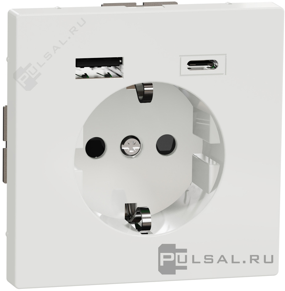 Розетка USB A+C, 2.4А с электрической розеткой D-Life, USB type-C 5V, USB type-A 5V, Электр. с USB, двойная, цвет - белый лотос