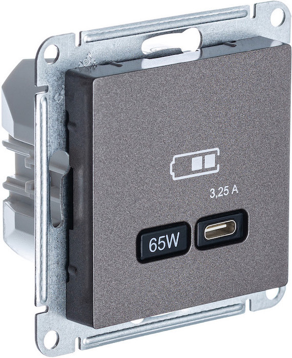Розетка USB type-C 65 Вт с быстрой зарядкой Atlas Design Antique, AtlasDesign Air, Atlas Design, USB type-C 5V, двойная, цвет - мокко