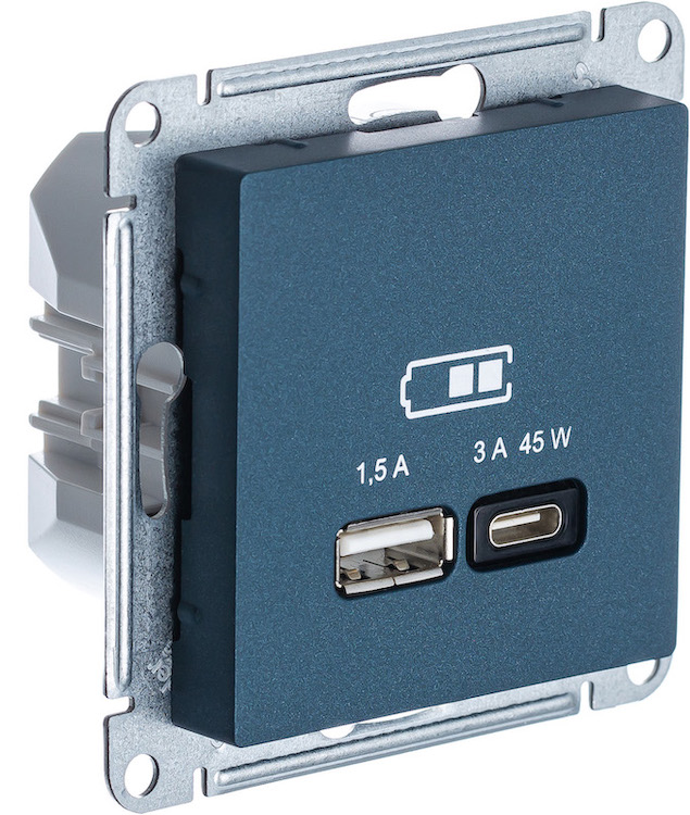 Розетка USB type-A+C 45 Вт с быстрой зарядкой Atlas Design Antique, AtlasDesign Air, Atlas Design, USB type-C 5V, USB type-A 5V, двойная, цвет - изумруд